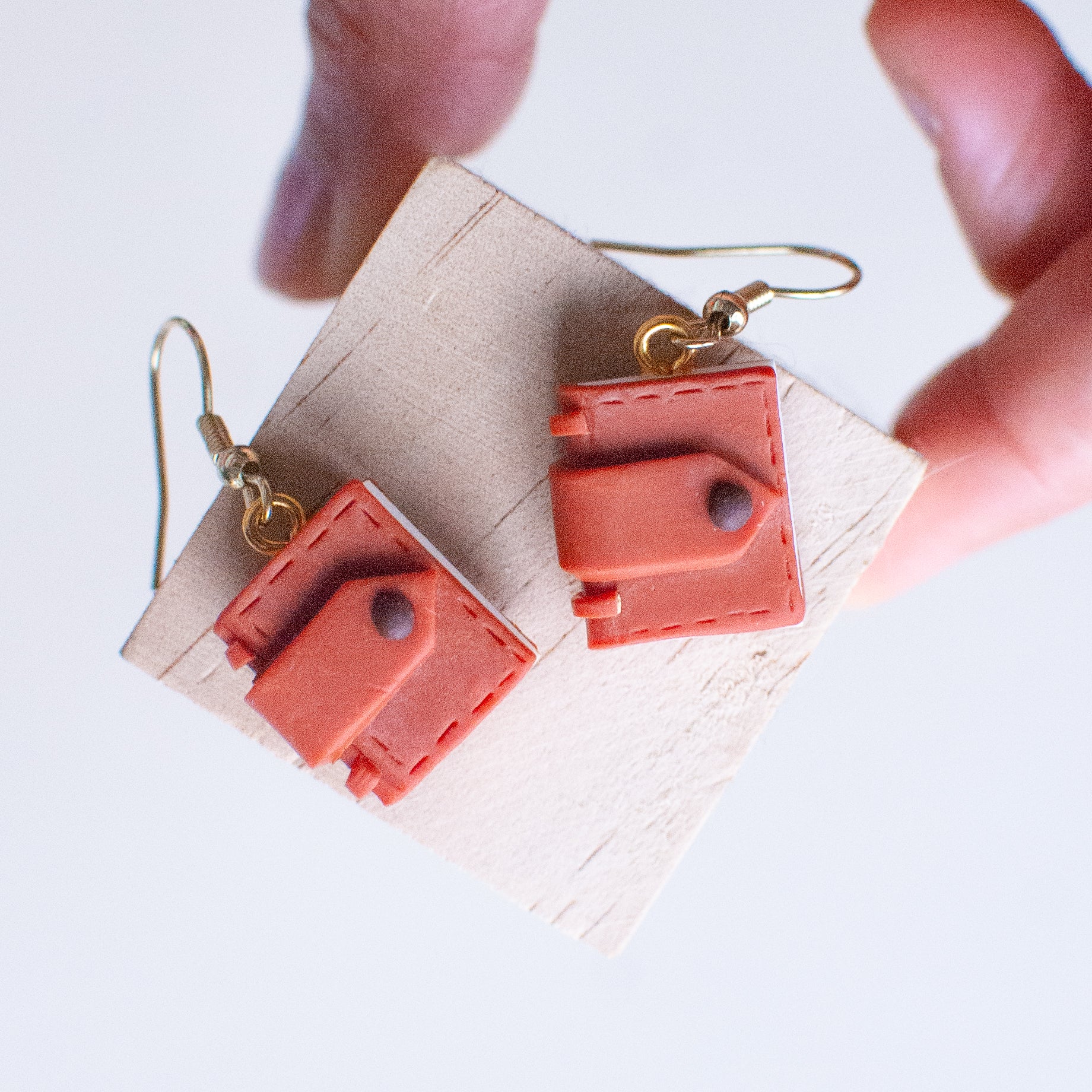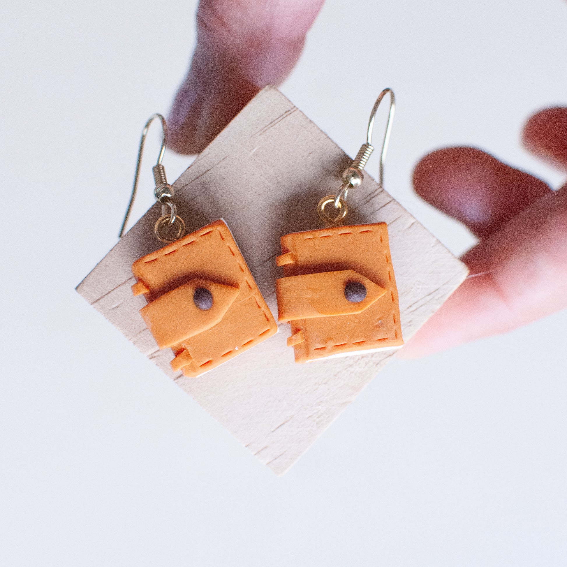 Gold toned iron fishhook earrings. Polymer clay handmade charms.